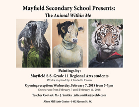 Paintings by Mayfield Secondary School Grade 11 Regional Arts Students, works inspired by Charlotte Caron.